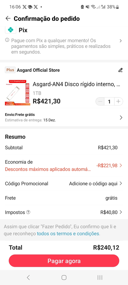 Aqui não deu bom no cupom e ainda deu imposto de 316 :(