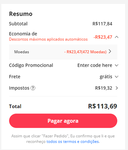 Valor considerando o uso de moedas. Impostos já inclusos