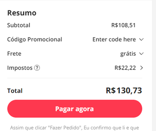 R$130,73 - Métodos de Pagamento: Pix, Pagamento Parcelado, PayPal, Google Pay, Boleto