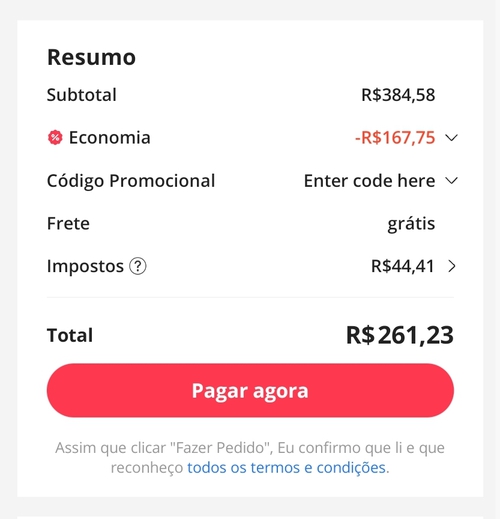 Valor considerando o uso de moedas, desconto automático e cupom. Os impostos já estão inclusos no valor, portanto você não vai pagar mais nenhuma taxa.