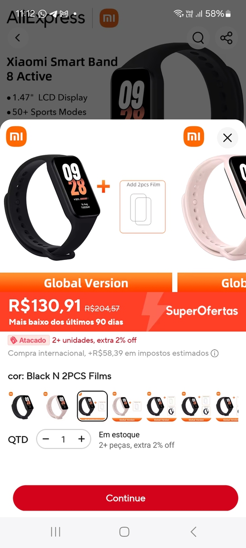 [Taxa Inclusa/ Gpay R$103] Kit Smart Band 8 da Xiaomi Versão Global com Display LCD de 1,47 + 2 Peliculas