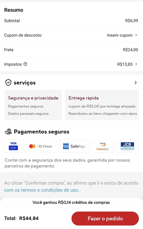 - Quando o produto da promoção aparecer no aplicativo do Aliexpress, prossiga até o final, na tela de "Confirmação do pedido".