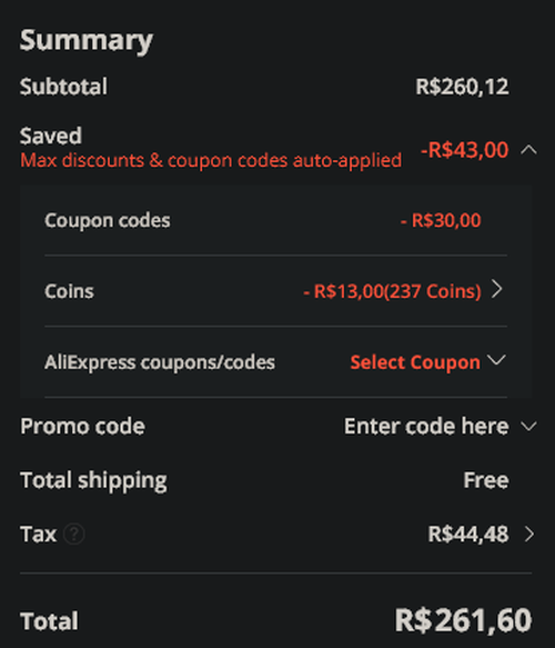 Consegui pagar 300 reais sem essa promoção e já está no Brasil. Esse preço está muito bom, se pudesse comprava novamente rsrs.