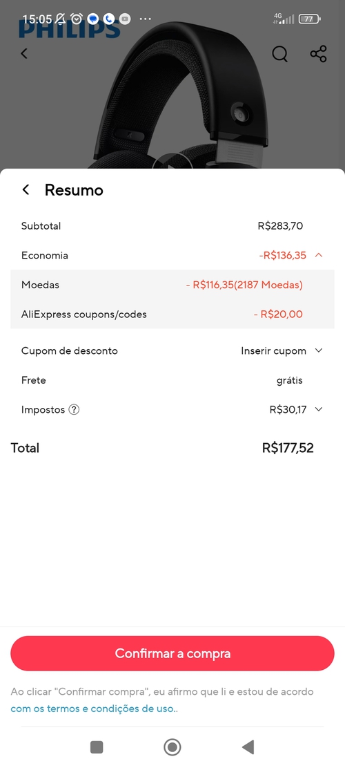 mesmo indo pela tela de moedas, os 52% de desconto não foram aplicados, o valor final ficou 290,31