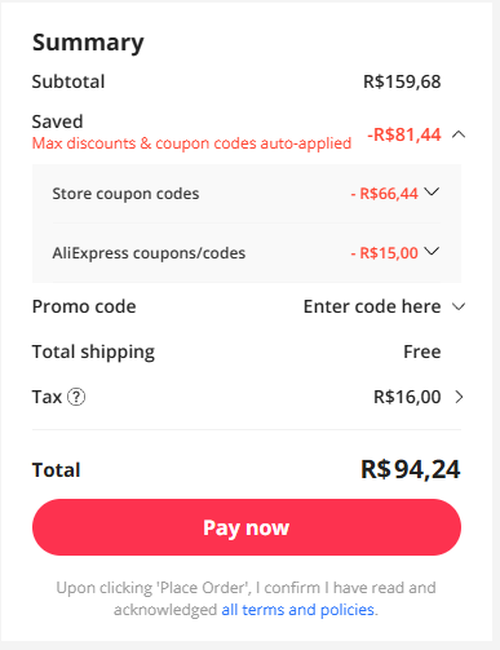 Máximo que consegui foi 80,00 porque já tinha utilizado o BRAS10, mesmo assim acho que tá valendo, boa compra, tem outro cupom não? Tenho outra conta.🥰🥰🥰