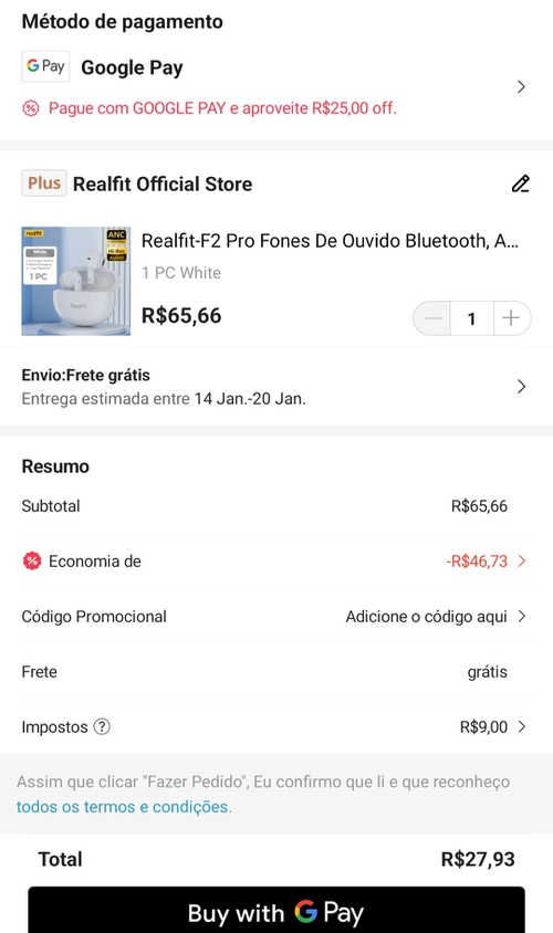 (Taxa Inclusa/Moedas/G Pay R$ 27,93) Fone Bluetooth Realfit-F2 Pro ANC com Cancelamento de Ruído Ativo