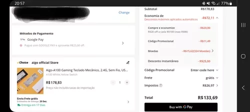 Não sei por que, mas aqui esse desconto do Google Pay só funciona no navegador no modo "para computador "