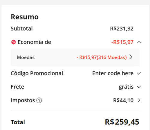 Valor considerando o desconto automático por moedas. Imposto já está incluso, não terá que pagar mais nada quando chegar no Brasil