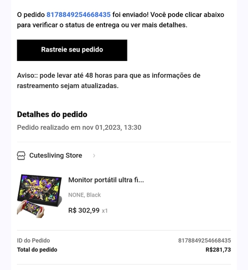 Tava com medo de ser cancela ja q logo depois o valor do imposto foi valor do produto... mas ja foi enviado. Os china sao rapido, rm e horas do pedido feito.