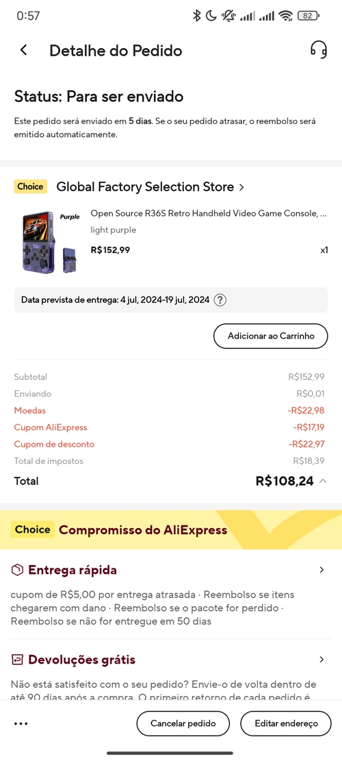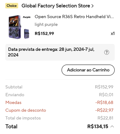 Há tempos tava querendo um desse,hj apareceu a oportunidade, muito obrigado por compartilhar a promo e o cupom,meus intervalos do trabalho serão mais divertidos. Pra mim saiu 110 em 2x de 55,00 ótimo preço, tava namorando o r36s desde quando custava 230 na época de lançamento.