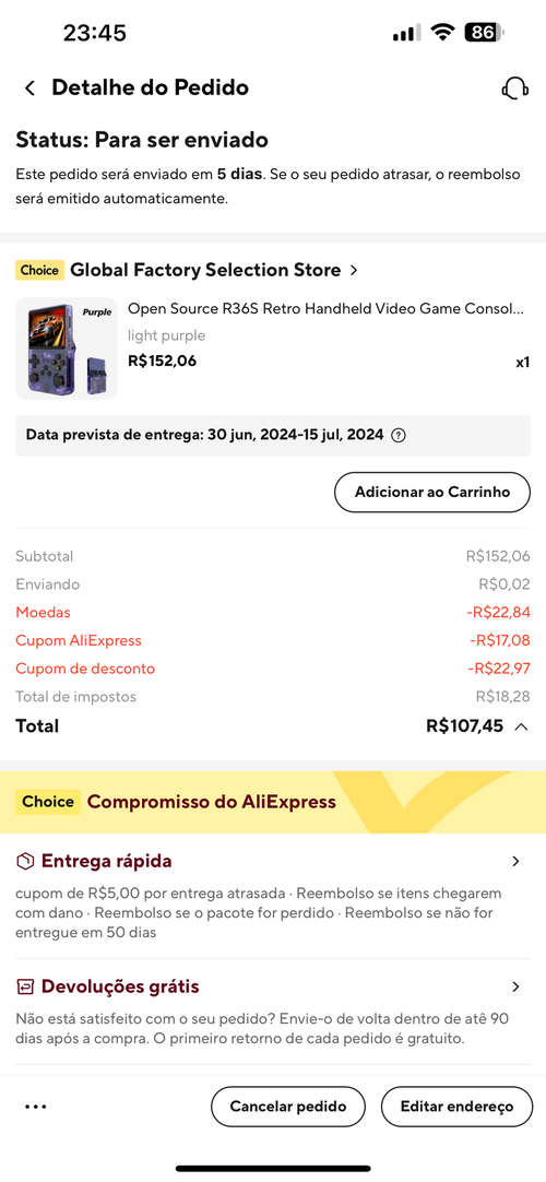 Comprei 2 de 107,00. Só não pego mais um pq acabou as moedas 🥲