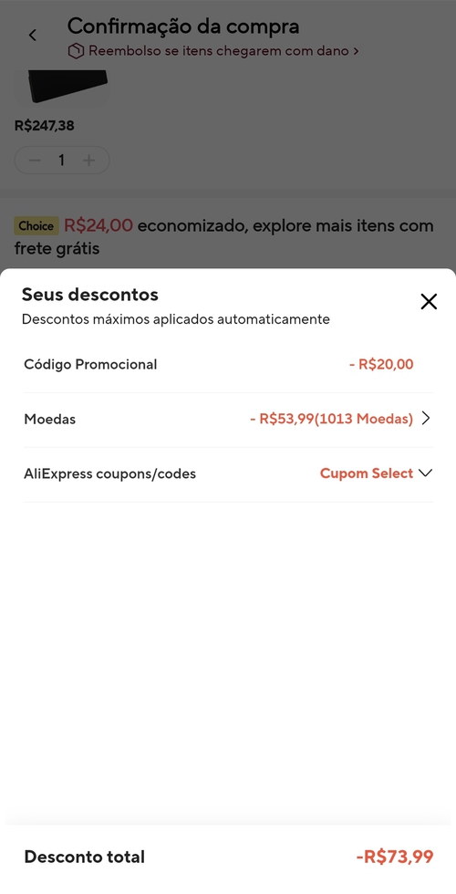 Tenho 2240 moedas e o máximo que consigo de desconto é 6 reais