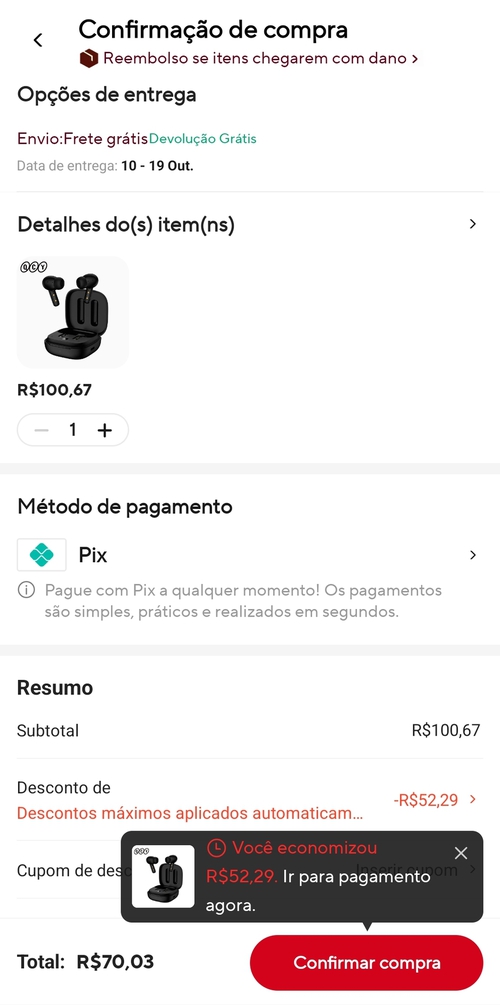 Como chegou nos R$ 70? Aqui consegui por R$ 94,87 no google pay.