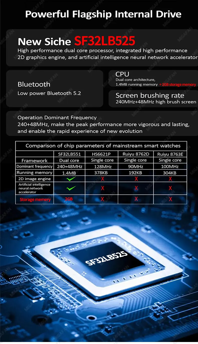 ☀Novo Siche SF32LB525: Processador dual core de alto desempenho, mecanismo gráfico 2D integrado de alto desempenho e acelerador de rede neural de inteligência artificial