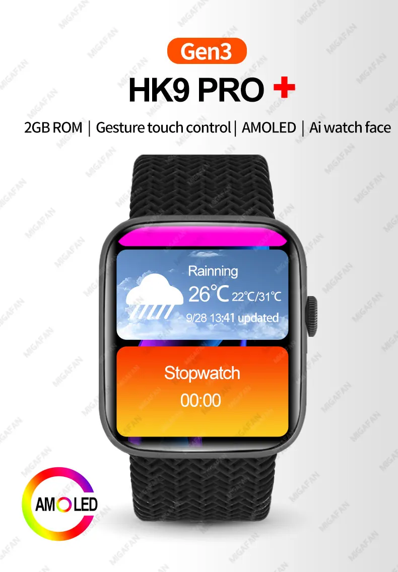 HK9 Pro Plus Gen3 AMOLED Relógio Inteligente Homens Mulheres ChatGPT NFC Smartwatch Ilha Dinâmica 2GB ROM Ai Relógio Cara para Android IOS 2023