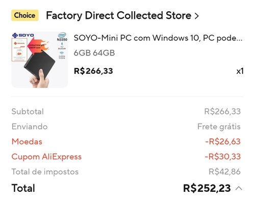 [Taxa Inclusa/Moedas] SOYO Mini PC com Intel N3350, 6GB RAM, 64GB EMMC e Windows 10