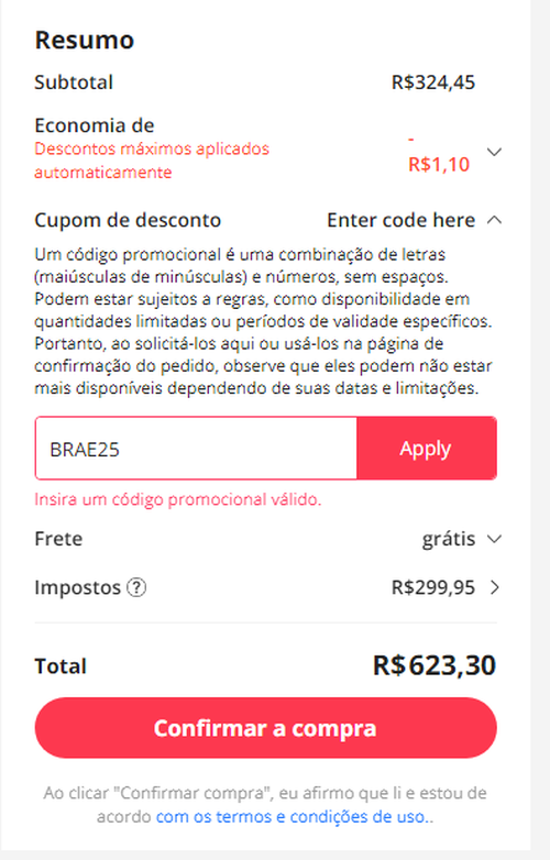 aqui deu 299,95 de impostos