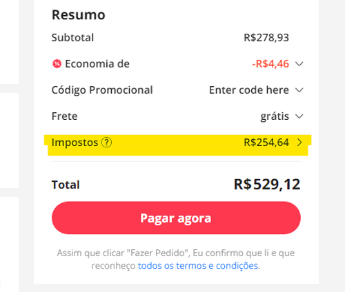 Fiz um teste em outro produto em que está incluso taxa de importação, ao colocar no carrinho, em visualizar aparece que não está incluso a taxa. Ou seja, pode ser bug do Aliexpress, fiquem alertas!