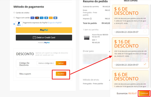 Tem que resgatar os cupons ''descrição'' para alcançar o valor final