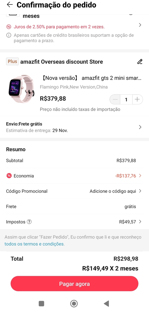 [Taxa Inclusa] - Smartwatch Amazfit GTS 2 Mini Com GPS integrado e Alexa [Nova Versão]