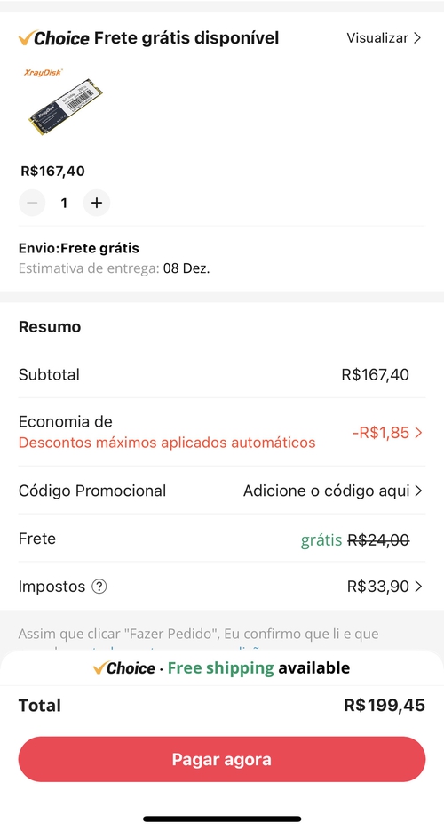 De preferência para realizar a compra pelo PC, pelo aplicativo as vezes não está entrando todo o desconto.