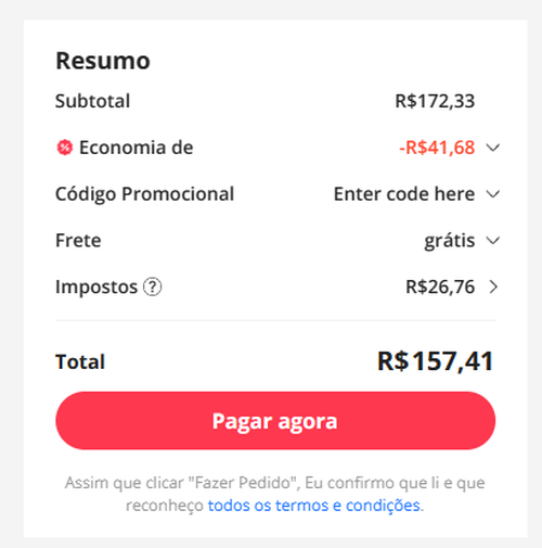 Valor considerando o uso do cupom e de moedas. Valor já incluindo impostos, não vai pagar mais nada além disso