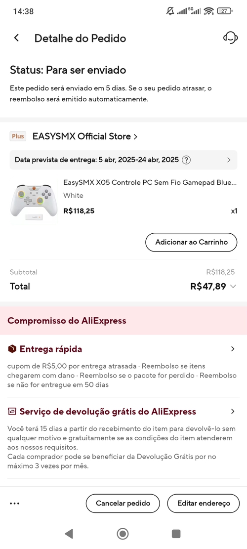 [Taxa Inclusa/Moedas R$77] Controle Sem Fio EasySMX X05 RGB, Analógicos/Gatilhos Hall Effect
