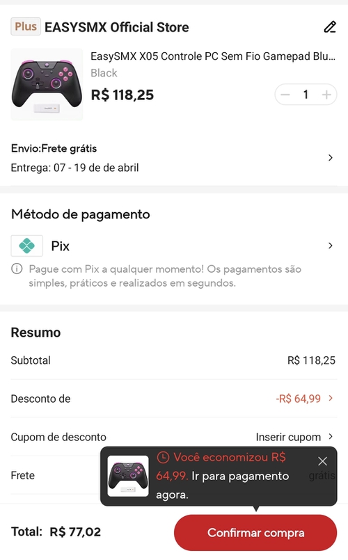 Depois é só pagar e ter 754 moedas + cupom, da pra parcelar