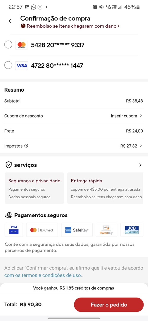 - Quando o produto da promoção aparecer no aplicativo do Aliexpress, prossiga até o final, na tela de "Confirmação do pedido".