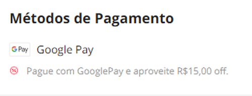 Selecione o Google Pây como forma de pagamento para o desconto adicional