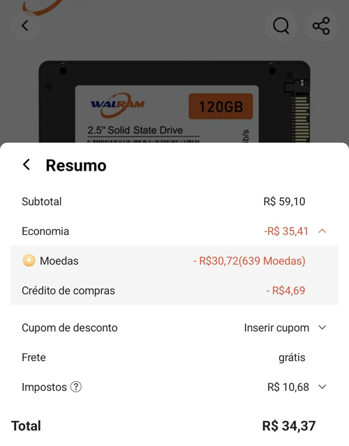 [Taxas Inclusas/R$19 Moedas App] SSD Sata Walram 120GB
