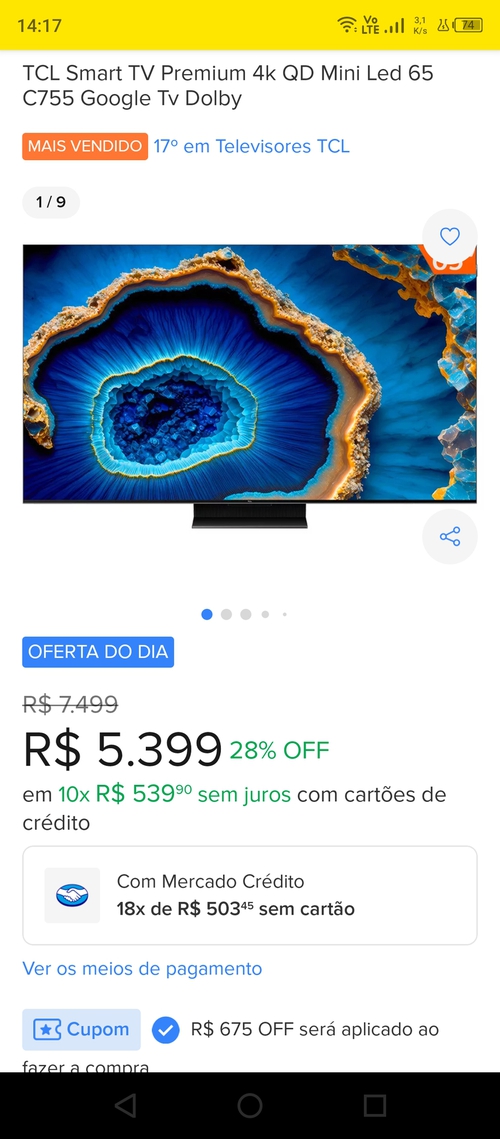 TCL Smart TV Premium 4k QD Mini Led 65 C755 Google Tv Dolby