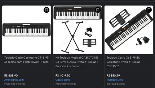 Teclado Casio CT-S195 Preto com 61 Teclas