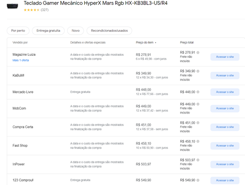 Comprei! Paguei 278 no PIX, retirar na loja. Nunca tive teclado mecânico, estava receoso de pegar o Switch Blue, pelo que pesquisei é o mais barulhento, espero não me arrepender.