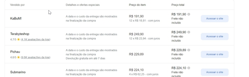 Menor preço de acordo com o Google