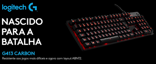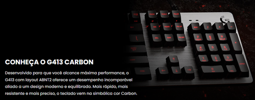 Teclado Mecânico Gamer Logitech G413 Carbon com Layout ABNT2, Iluminação Vermelha, USB Passthrough e