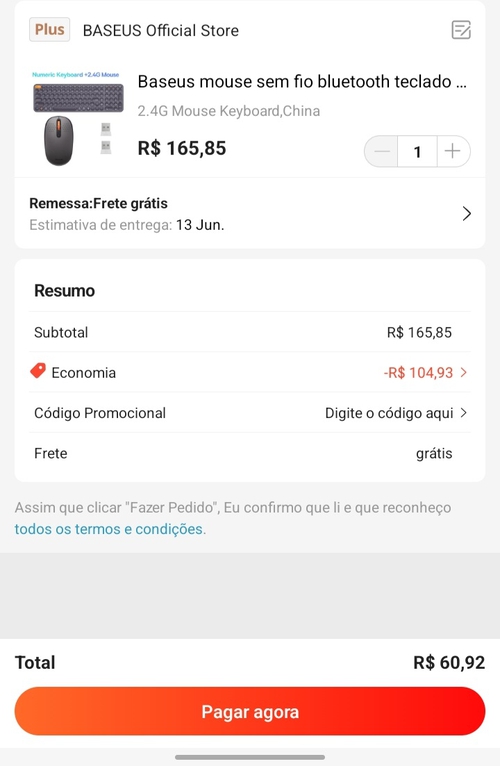 O teclado bluetooth tá sem estoque até o dia 23, segundo o vendedor. Comprei na promo de lançamento.Gente consegui pegar o teclado separado menor com o desconto por 40 reais de duas vezes, só colocar dois produtos teclado e mouse pra pagar como boleto , no final pague só um porque os pedidos se separam .