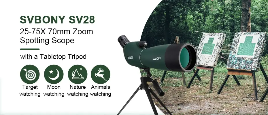 Telescópio Monocular SVBONY SV28 25-75x70 Impermeável com tripé, Camping