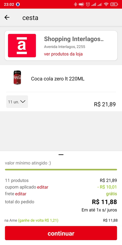 App parou depois de oferecer o cupom, volta normal dps q acabar o bbb