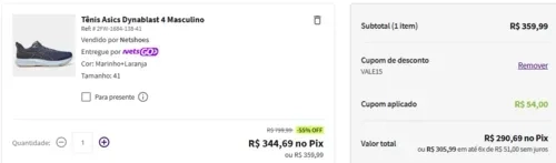 Consegui aplicar o cupom apenas nos modelos marinho/laranja e preto/cinza.