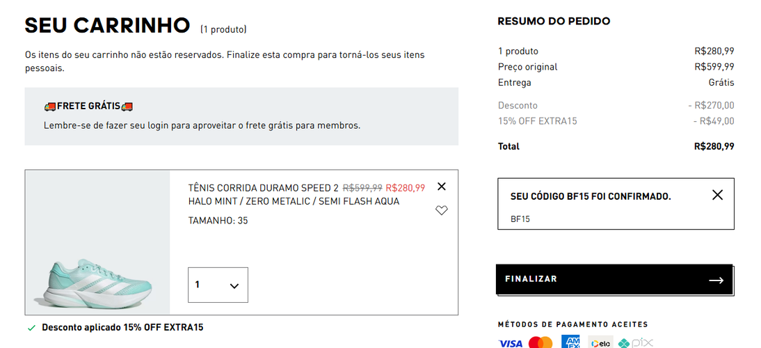 para conseguir um descontinho maior ainda, o site "Cupo_nomia" esta dando 10% de cashback hoje para adidas