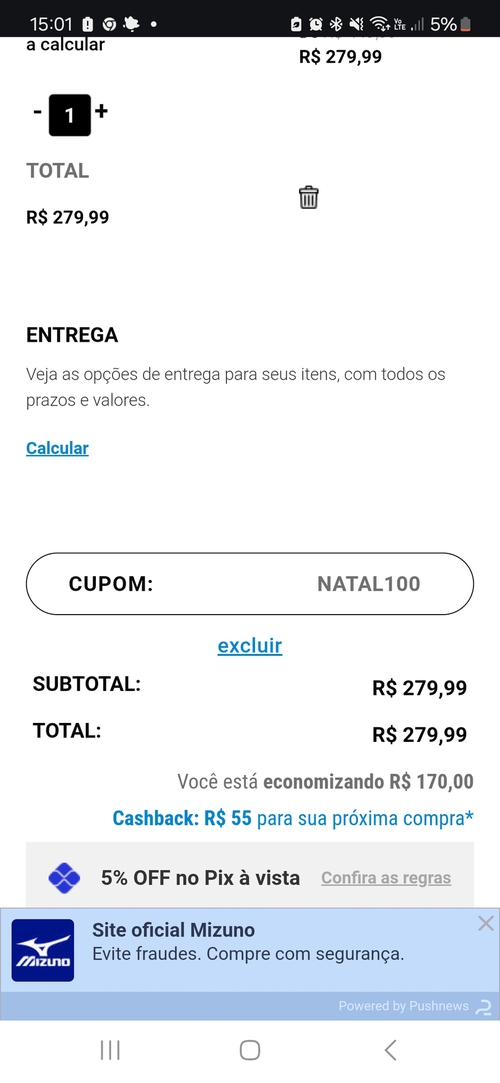 Quando vai pra hora de pagar fica com o valor normal, sem ser 170...