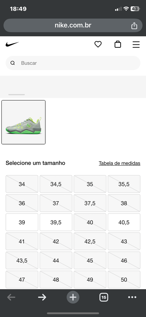 O verde tem os tamanhos 39 - 39,5 e 40,5