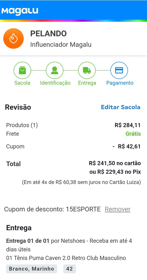 O cupom só funciona através da página de influenciador do Pelando no Magalu.