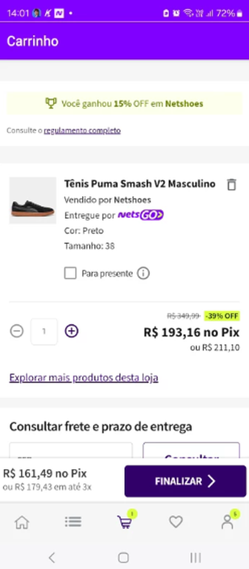 Só é possível chegar no valor pelo APLICATIVO DA LOJA
