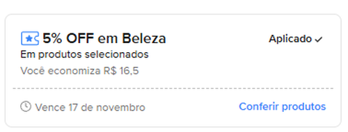 Necessário ativar o cupom de 5% OFF em Beleza, na descrição do anúncio ou na área de pagamento, e também inserir o cupom SANTANDER1INT8