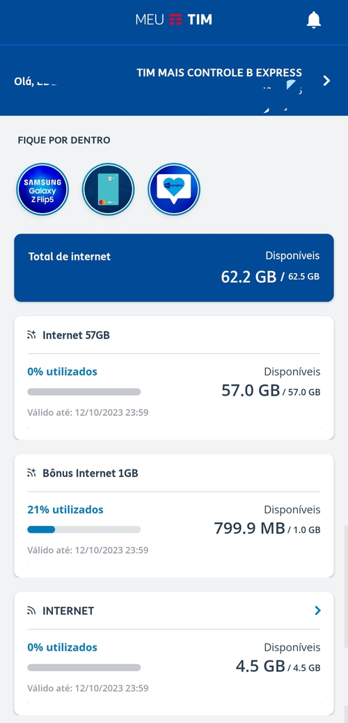 Tenho um plano controle que pago R$49,90 e tenho 62GB de internet.