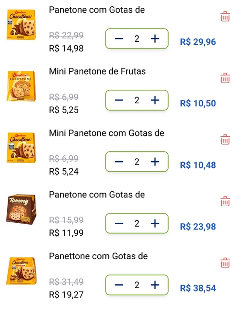 Pessoal peguei aqui dois Chocottones Bauducco de 400g a 14.99 cada e 2 x Havana de Doce de Leite de 700g a 37,43 cada (esse Havana está com desconto mais a promocao de 50% no segundo e finalmente com um preco interessante)