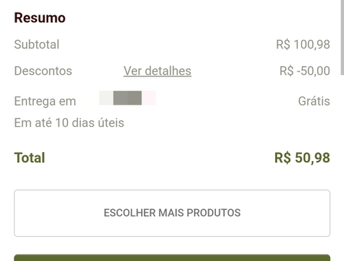 50% off no site! Pedidos a partir de R$ 100 após aplicar o cupom tem frete grátis.