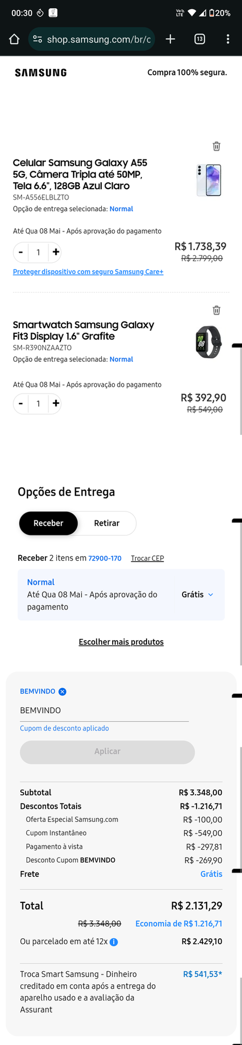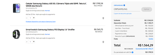 Essas promoções da Samsung tão pura enganações, mais cedo um colocou que o A55 tava saindo por 1115, que na verdade era o A34, agora é esse que o 700 reais de desconto não vai 👎🏾